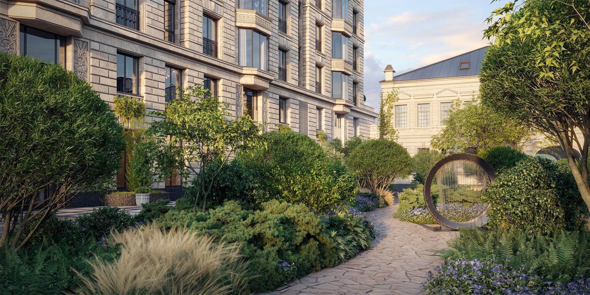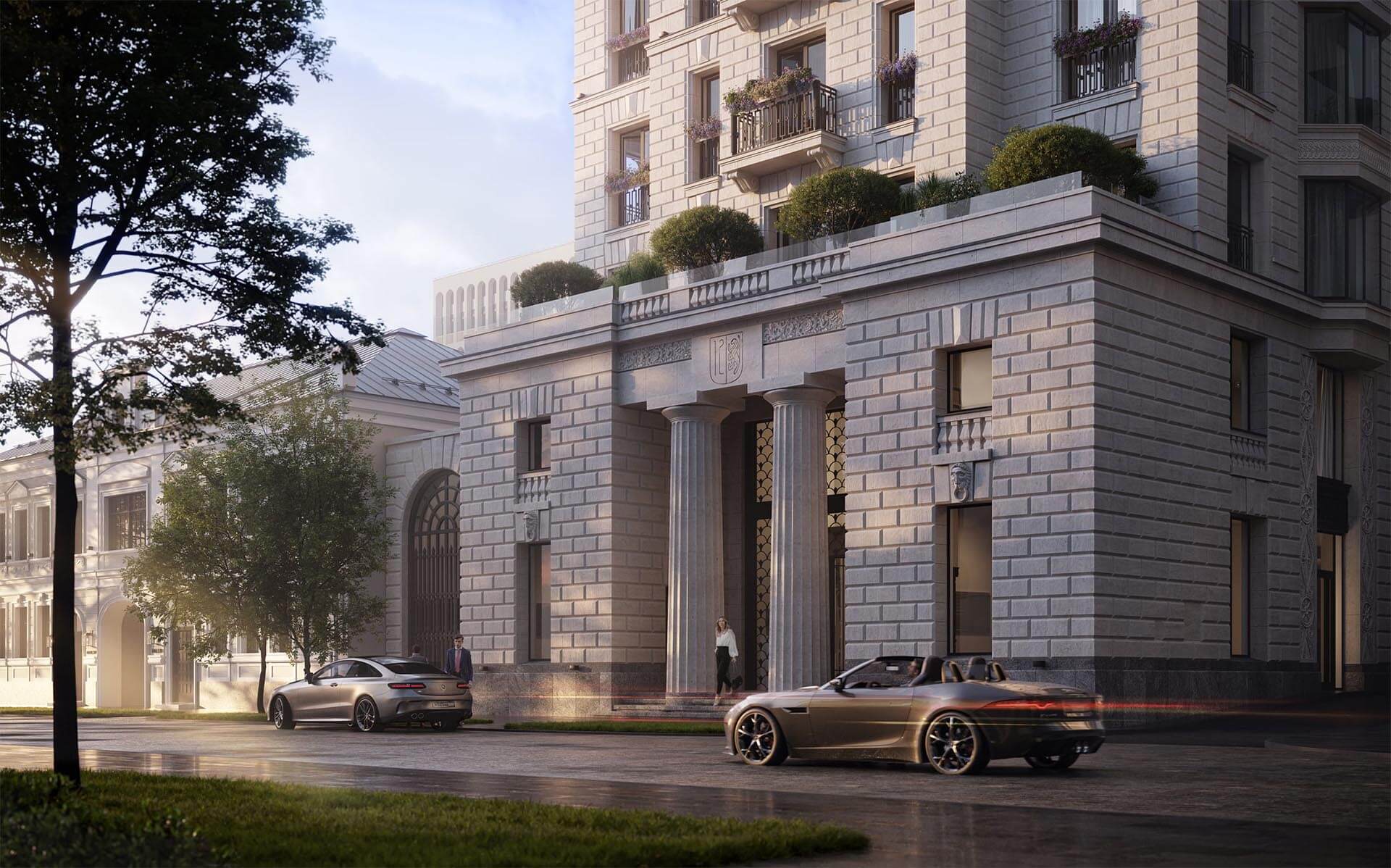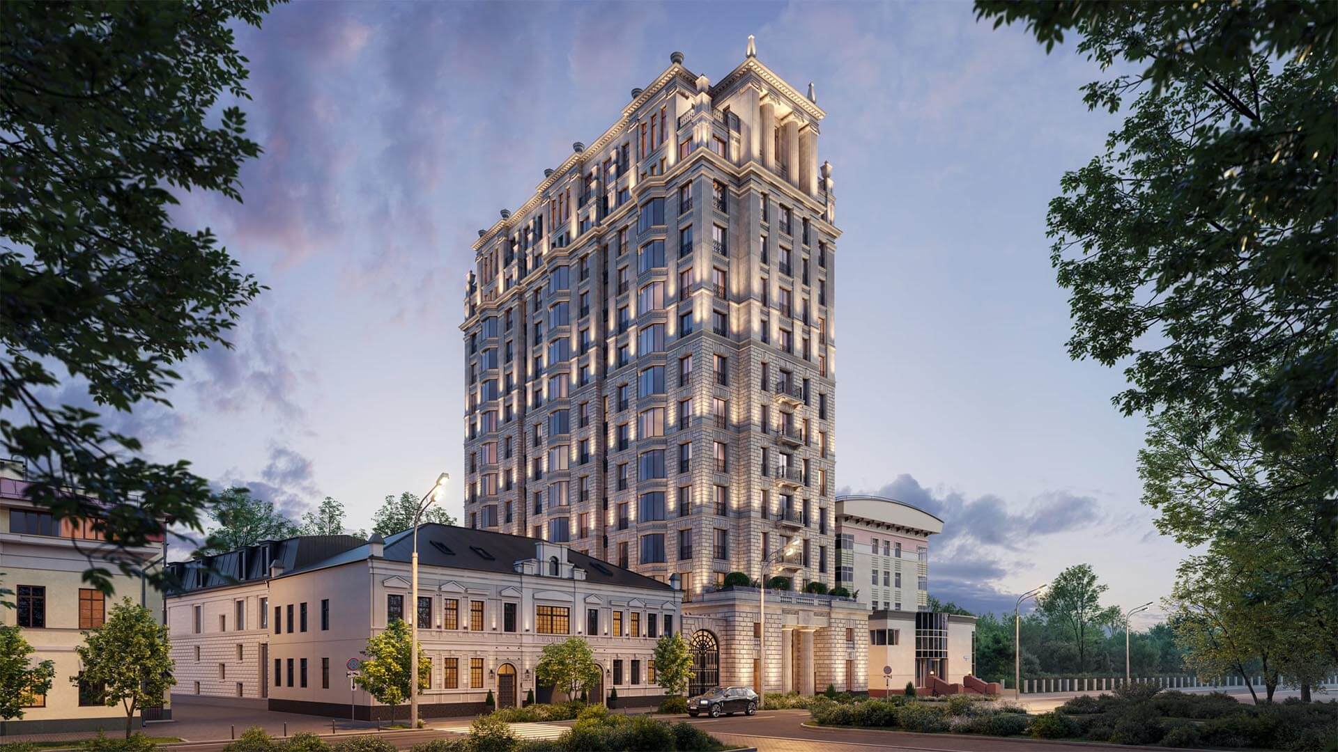 Архитектурная концепция ЖК «Хамовники 12» основана на классических принципах, которые проверены временем и остаются актуальными. Элегантные формы, симметрия, гармоничные пропорции и внимание к деталям делают этот дом образцом архитектурного искусства. В отличие от традиционных построек, здание ориентировано на круговой обзор, благодаря чему каждая из четырех сторон обладает статусом парадной.