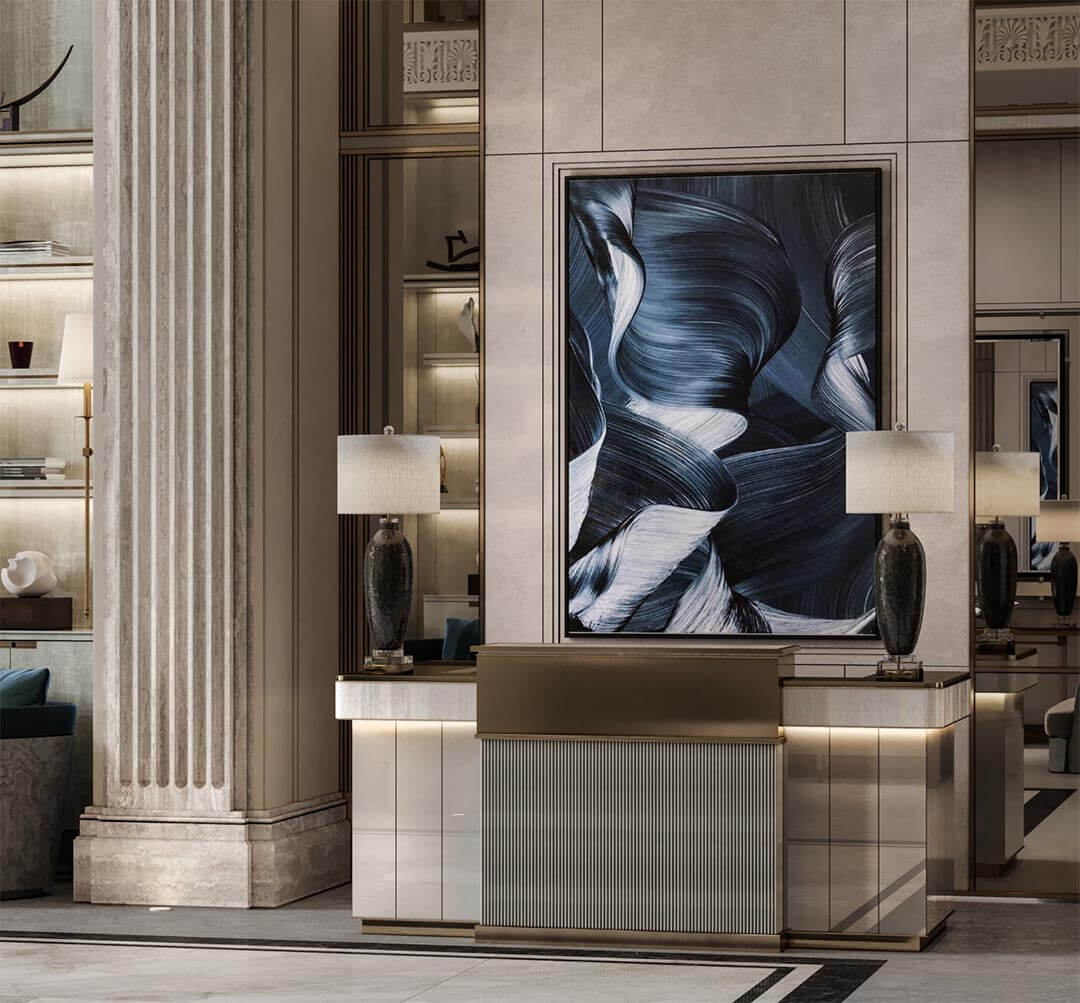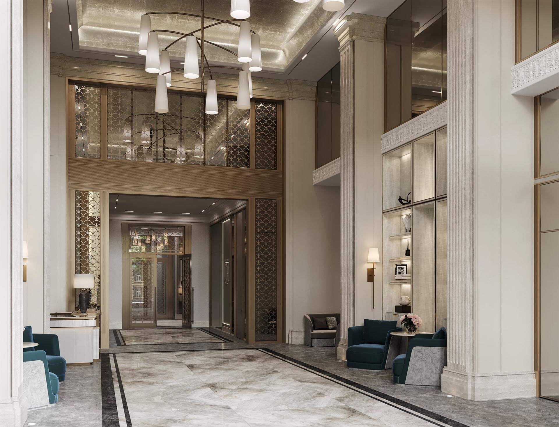 Лобби клуба «Хамовники 12» — это не просто входная зона, а пространство, которое задает тон всему дому, создавая ощущение гармонии и утонченного стиля. Просторный вестибюль, созданный по проекту дизайн-бюро Oleg Klodt Architecture & Design, представляет собой идеальное сочетание функциональности и эстетики, где каждая деталь тщательно продумана.